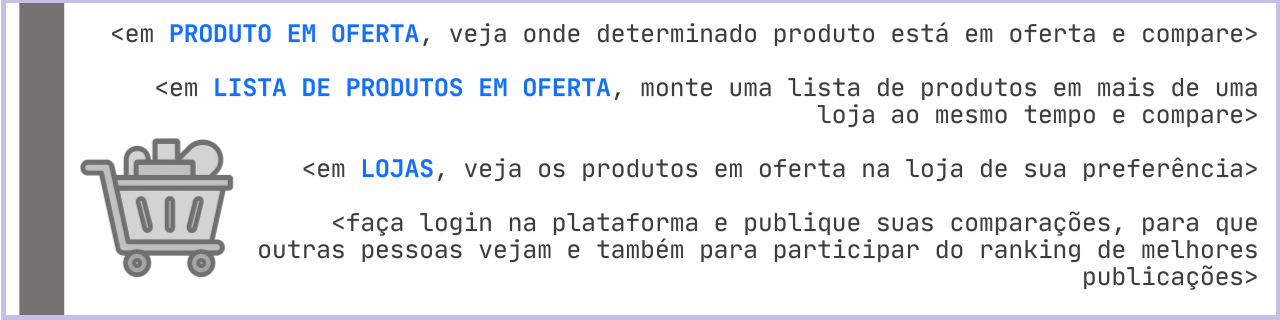 Veja onde determinado produto está em oferta e compare! 1) Selecione a cidade: Campinas Começar! No momento atuamos em Campinas-SP, mas todos (de qualquer cidade) podem pesquisar!